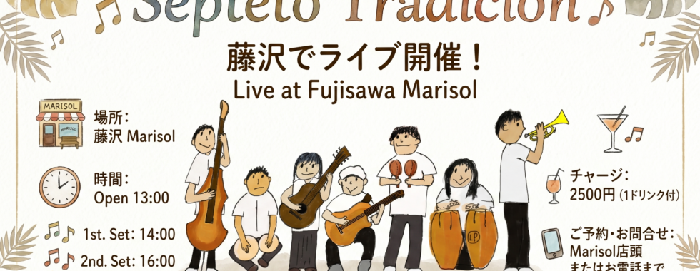 04 1月 2025 演奏のご依頼お待ちしております |By Comrito|0 Comment|お知らせ Septeto Tradicionは皆様の街まで演奏に伺いますご依頼等はこちらまで。 mailto:contact@tradicion.jp